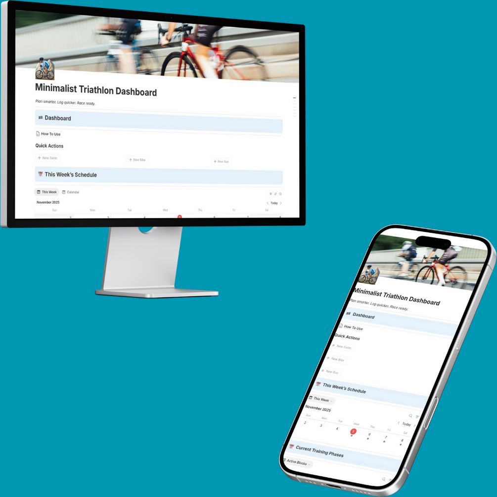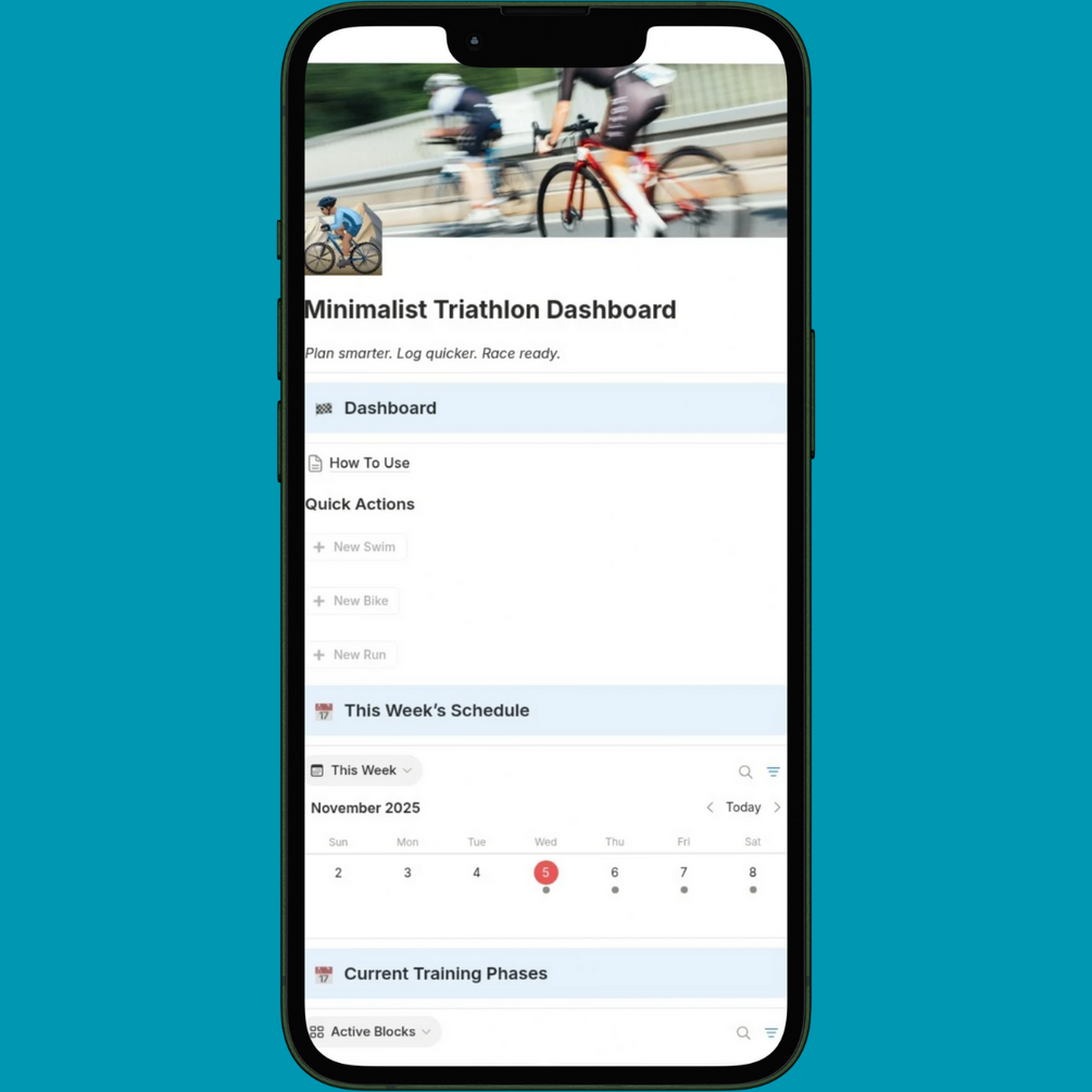 Start your triathlon journey with structure and simplicity. The Triathlon Starter Kit is a free Notion template designed to help new triathletes build consistency and track progress across swim, bike, and run training.