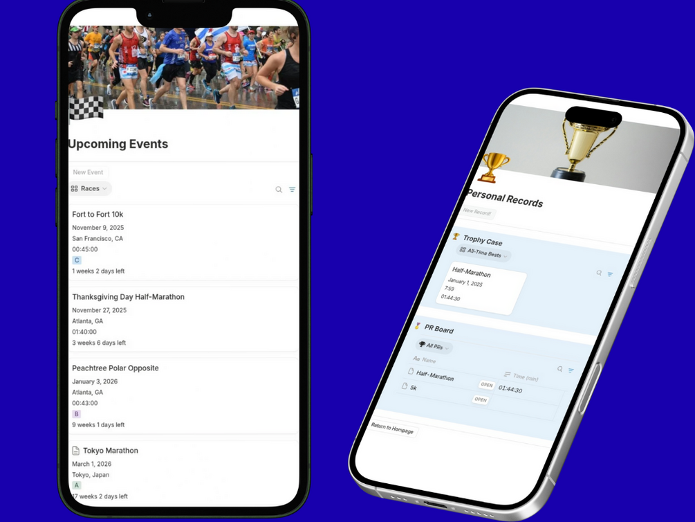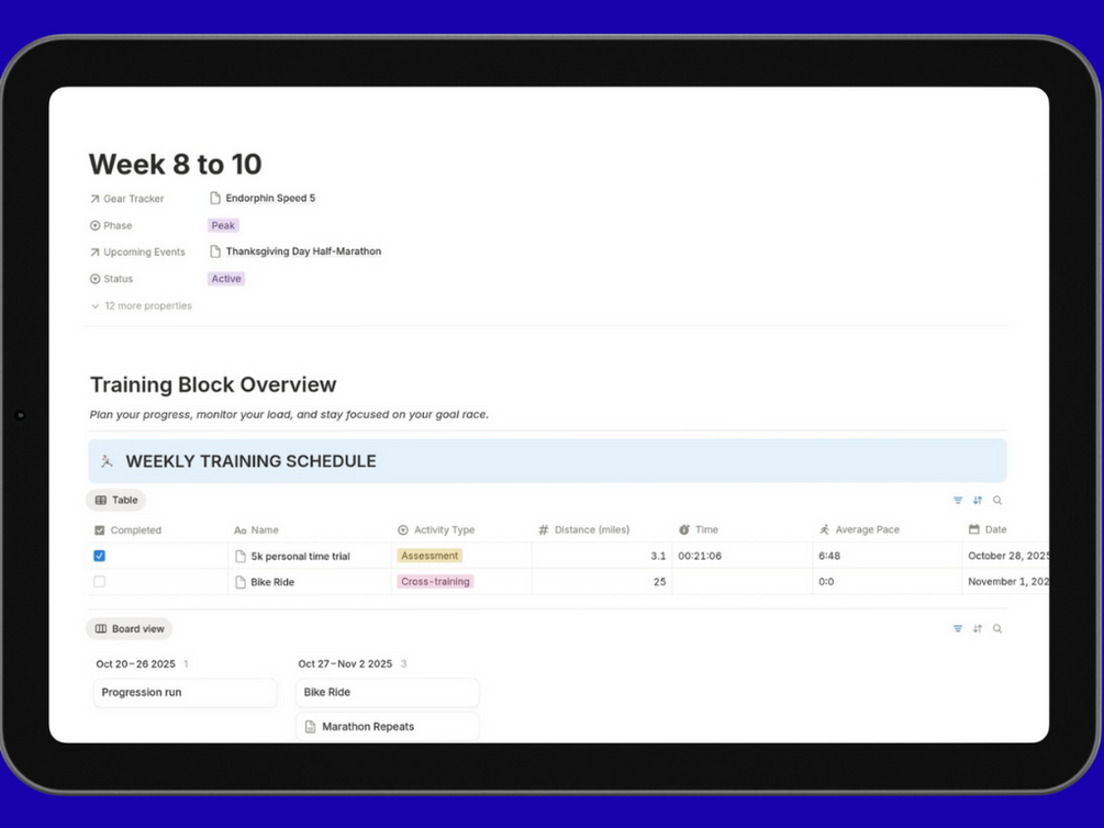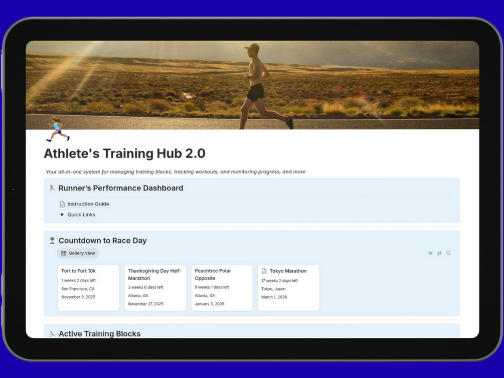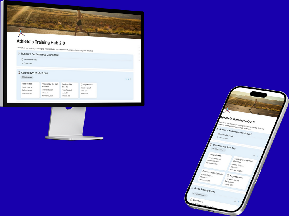 Athleteโs Training Hub is an all-in-one Notion system built for runners who want structure, progress, and purpose in every mile.